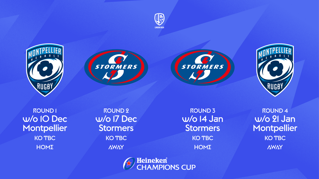 London Irish’s Heineken Champions Cup pool stage fixtures have been confirmed.