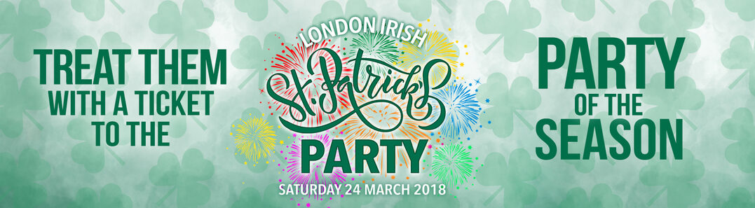 With a ticket to the St Patrick's Party you'll be giving a gift that they'll never forget! Gloucester Rugby will be our guests on Saturday 24 March 2018 (kick-off 3pm) for the 17th annual St Patrick's Party, combining an Aviva Premiership Rugby game with a cracking day of non-stop entertainment. Until midnight on Monday 8 January you can book a ticket at the party of the season with Early Bird discount prices of just £3 for under 13s and £22 for adults.