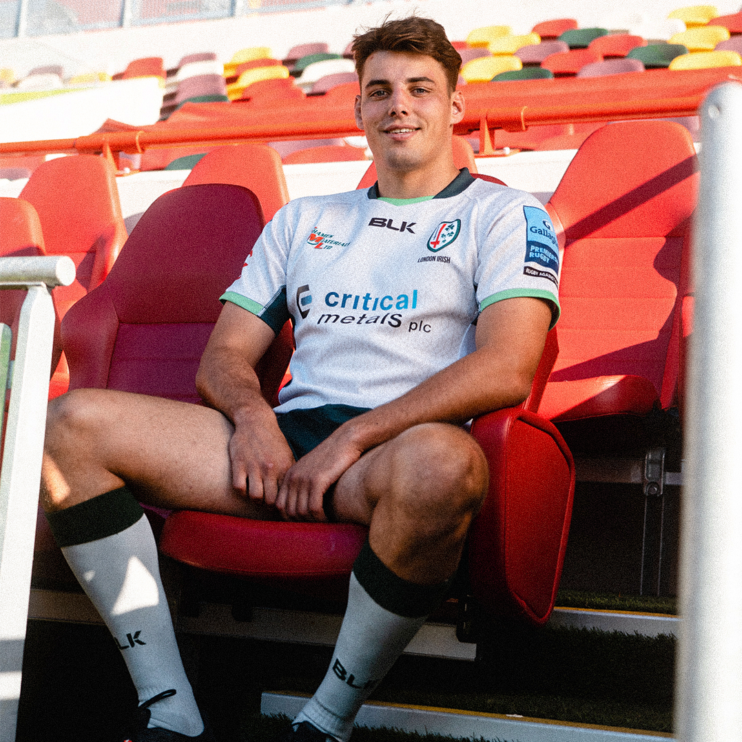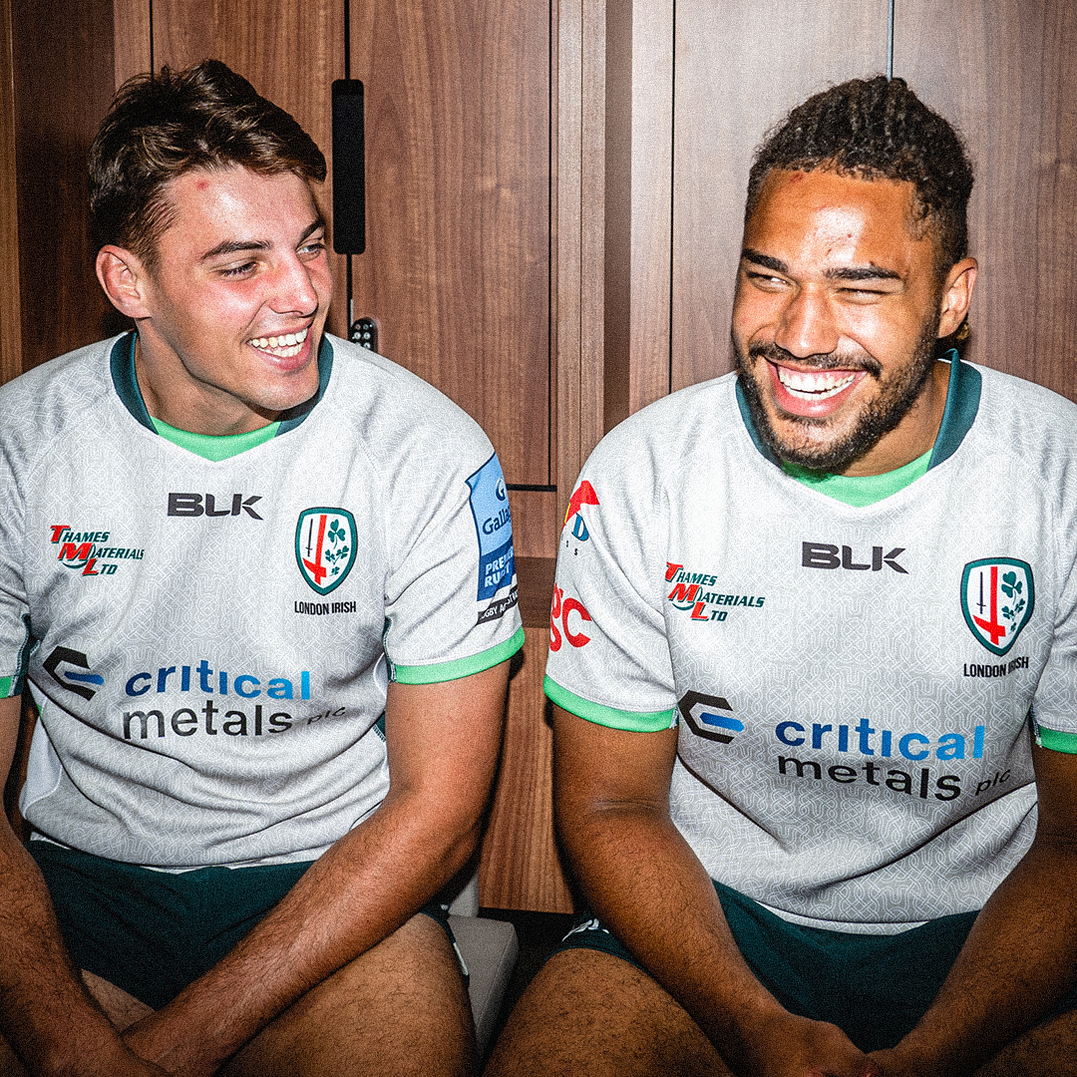 Having become London Irish’s Principal Partner, Critical Metals plc. decorate the front of the new shirt just as on the Home outfit.