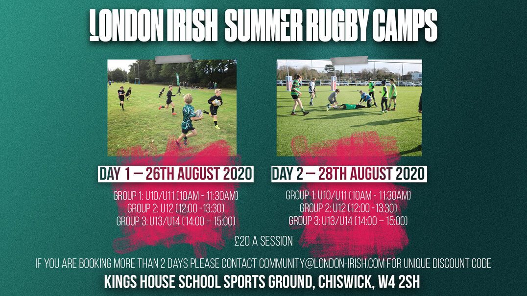 The London Irish Community team is delighted to reveal the dates for their Summer Rugby camps.