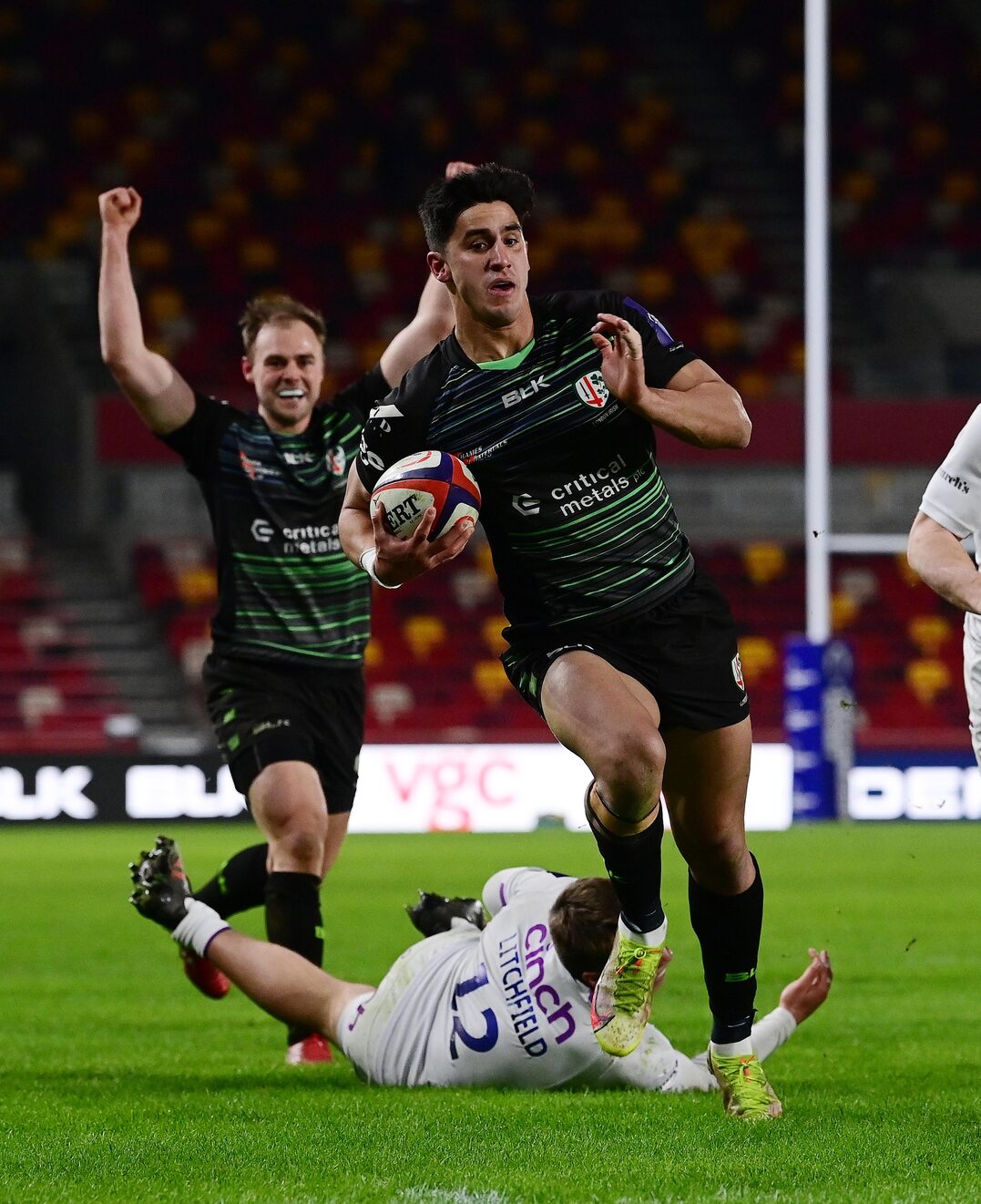 Irish was utilising the edges of the Gtech pitch for the first time in the encounter, making hay through strong phase play of their own but coming in from the side halted their procession to the line just five metres out.