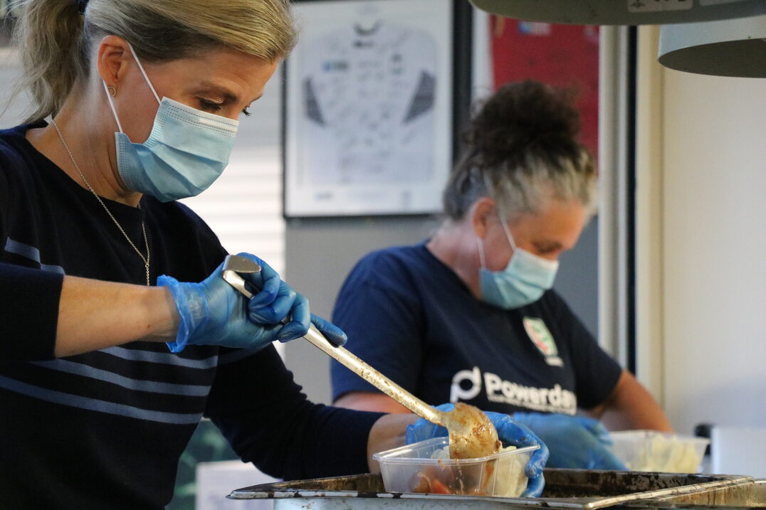 Members of the #PoweringTheNHS volunteer initiative welcomed HRH Prince Edward, Earl of Wessex, and his wife Sophie, Countess of Wessex, to Hazelwood, the home of London Irish earlier today as they volunteered their time to support with the preparation and delivery of meals to NHS Hospitals (Thursday 11 June).
