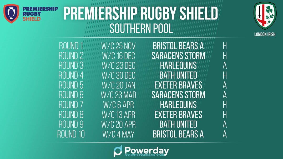 London Irish will return to Premiership Rugby Shield action this season in the Southern Pool of the competition.