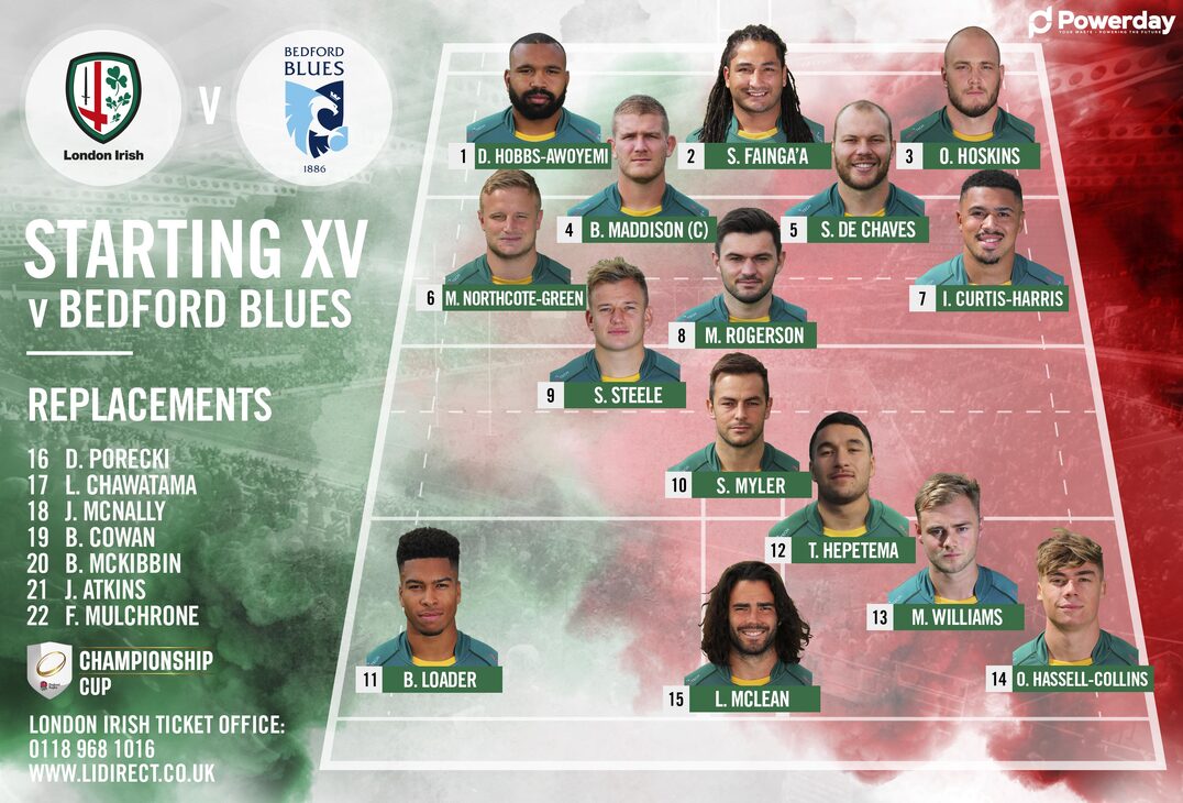 London Irish make five changes to the starting XV for this Sunday’s Championship Cup fixture with Bedford Blues at the Madejski Stadium (kick-off 3pm).