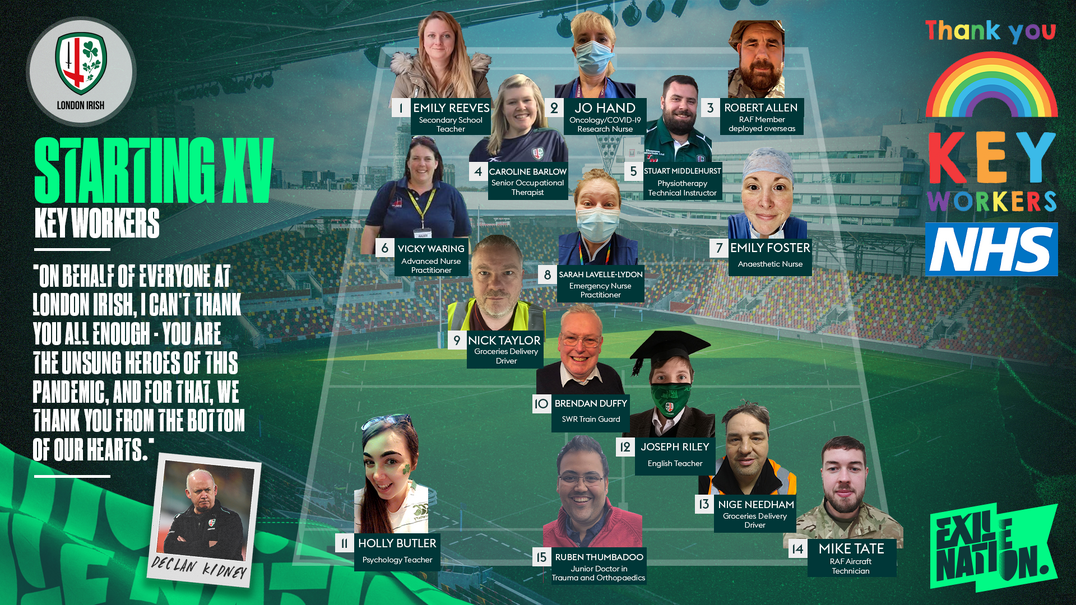 "On behalf of everyone at London Irish, I can't thank you all enough – you are the unsung heroes of this pandemic, and for that, we thank you from the bottom of our hearts."