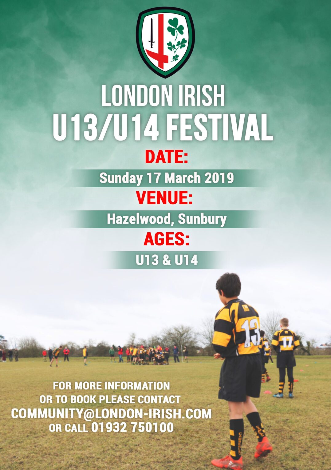 Following on from the launch of the U11/12 Festival, the community team are now taking bookings for teams to take part in the U13/14 Festival. Both festivals will take place at London Irish’s home, Hazelwood in Sunbury.